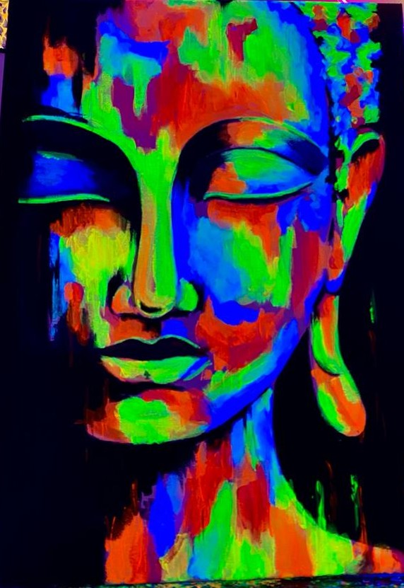 Cuadro fluorescente del Buda terminado en el taller flúor Gracia.